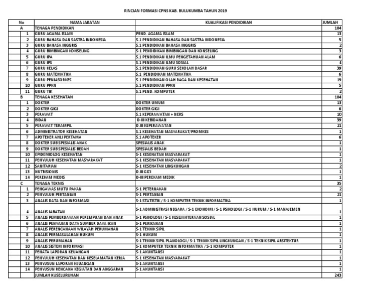 Formasi Lowongan Cpns Kab Morowali 2019 Lulusan Sma D3 S1 Tipssehatcantik Com from i0.wp.com Adapun peruntukan instansi pemerintah daerah terdiri dari guru kelas dan mata pelajaran sebanyak 88.000 formasi, guru agama sebanyak 8.000 formasi, tenaga kesehatan sebanyak 60.315 formasi (dokter umum, dokter spesialis, dokter gigi, dan tenaga medis/paramedis), serta tenaga teknis yang diisi dari pelamar umum sebanyak 30.429 formasi Formasi cpns kab ponorogo jatim 2021 lulusan sma d3 s1. Belakang s‐1 antara lain matematika/ pendidikan. Untuk halmahera barat, s1 pendidikan matematika dibuka sebanyak 14 formasi, kabupaten halmahera selatan sebanyak 6 formasi. Adakah formasi cpns selain guru untuk sarjana pendidikan matematika? Memiliki pengetahuan dan kemampuan menampilkan perilaku sebagai warga negara yang agamis, mencintai negara, bangsa, dan budaya indonesia berdasarkan jiwa pancasila, serta memiliki kemandirian dalam berkarya secara inovatif, adaptif dan kritis. Guru agribisnis tanaman pangan dan hortikultura pertama. Sedangkan di kabupaten pulau morotai disiapkan 5 formasi.